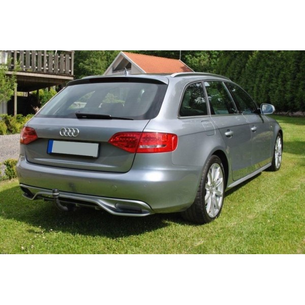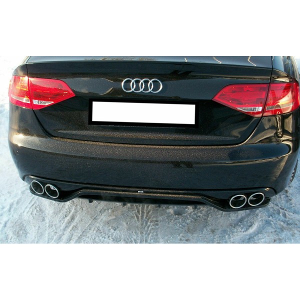 Spoiler zadního nárazníku difuzor Audi A4 B8 2007-2011. Spoiler je vhodný pro sedan i combi. Materiál: laminát. Vyrobeno z vysoce kvalitního sklolaminátu (GFK). Certifikovaný materiál (testováno TUV). Super kvalita a cena, jedinečný design, velmi elegantní vzhled. Dodáváno v černé základní barvě. Určeno pro lak. Homologace TUV (materiál) – vyražena. Jsme přímým dovozcem!