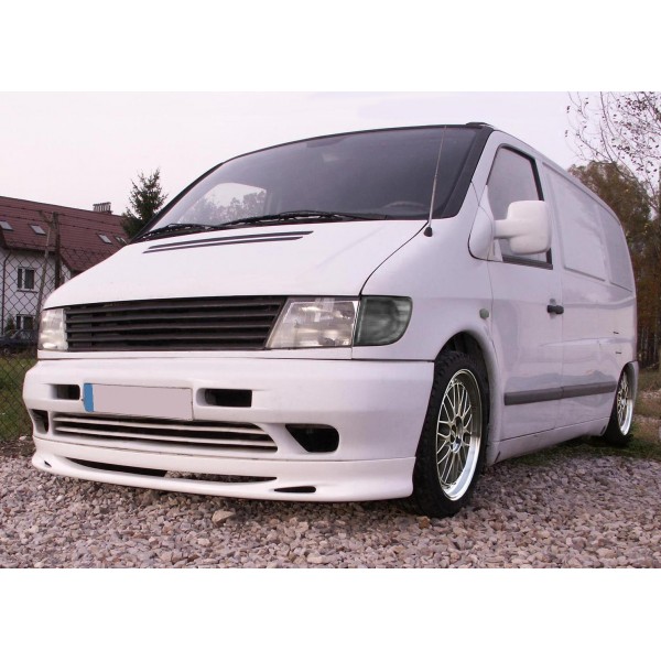 Spoiler předního nárazníku Mercedes Vito Viano V-klasse W638 1996-2003. Materiál: laminát. Vyrobeno z vysoce kvalitního sklolaminátu (GFK). Certifikovaný materiál (testováno TUV). Super kvalita a cena, jedinečný design, velmi elegantní vzhled. Dodáváno v černé základní barvě. Určeno pro lak. Homologace TUV (materiál) – vyražena na spoileru. Jsme přímým dovozcem!