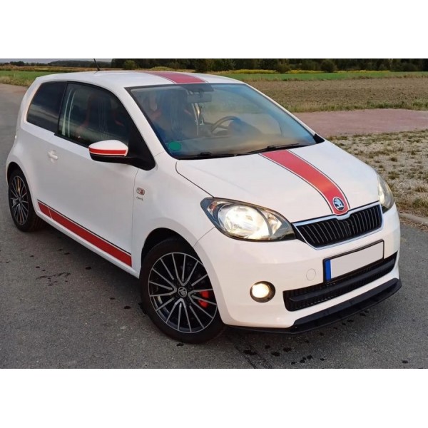 Spoiler předního nárazníku Škoda Citigo 2012-2017. Materiál: laminát. Vyrobeno z vysoce kvalitního sklolaminátu (GFK). Certifikovaný materiál (testováno TUV). Super kvalita a cena, jedinečný design, velmi elegantní vzhled. Dodáváno v černé základní barvě. Určeno pro lak. Homologace TUV (materiál) – vyražena na spoileru. Jsme přímým dovozcem!