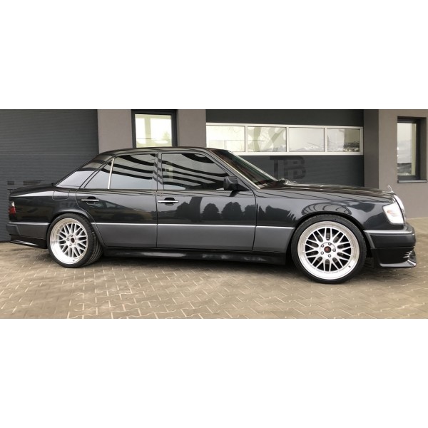 Tuning kryty prahů Mercedes Benz E-tř. W124 (Sedan, Combi) 1984-1997. Materiál: laminát. Vyrobeno z vysoce kvalitního sklolaminátu (GFK). Certifikovaný materiál (testováno TUV). Super kvalita a cena, jedinečný design, velmi elegantní vzhled. Dodáváno v černé základní barvě. Určeno pro lak. Homologace TUV (materiál) – vyražena na dílech. Uvedená cena je za pár. Jsme přímým dovozcem!