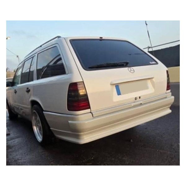 Spoiler zadního nárazníku Mercedes Benz E-tř. W124 Combi 1984-1997 (3-dílný). Materiál: laminát. Vyrobeno z vysoce kvalitního sklolaminátu (GFK). Certifikovaný materiál (testováno TUV). Super kvalita a cena, jedinečný design, velmi elegantní vzhled. Dodáváno v černé základní barvě. Určeno pro lak. Homologace TUV (materiál) – vyražena na spoileru. Jsme přímým dovozcem!